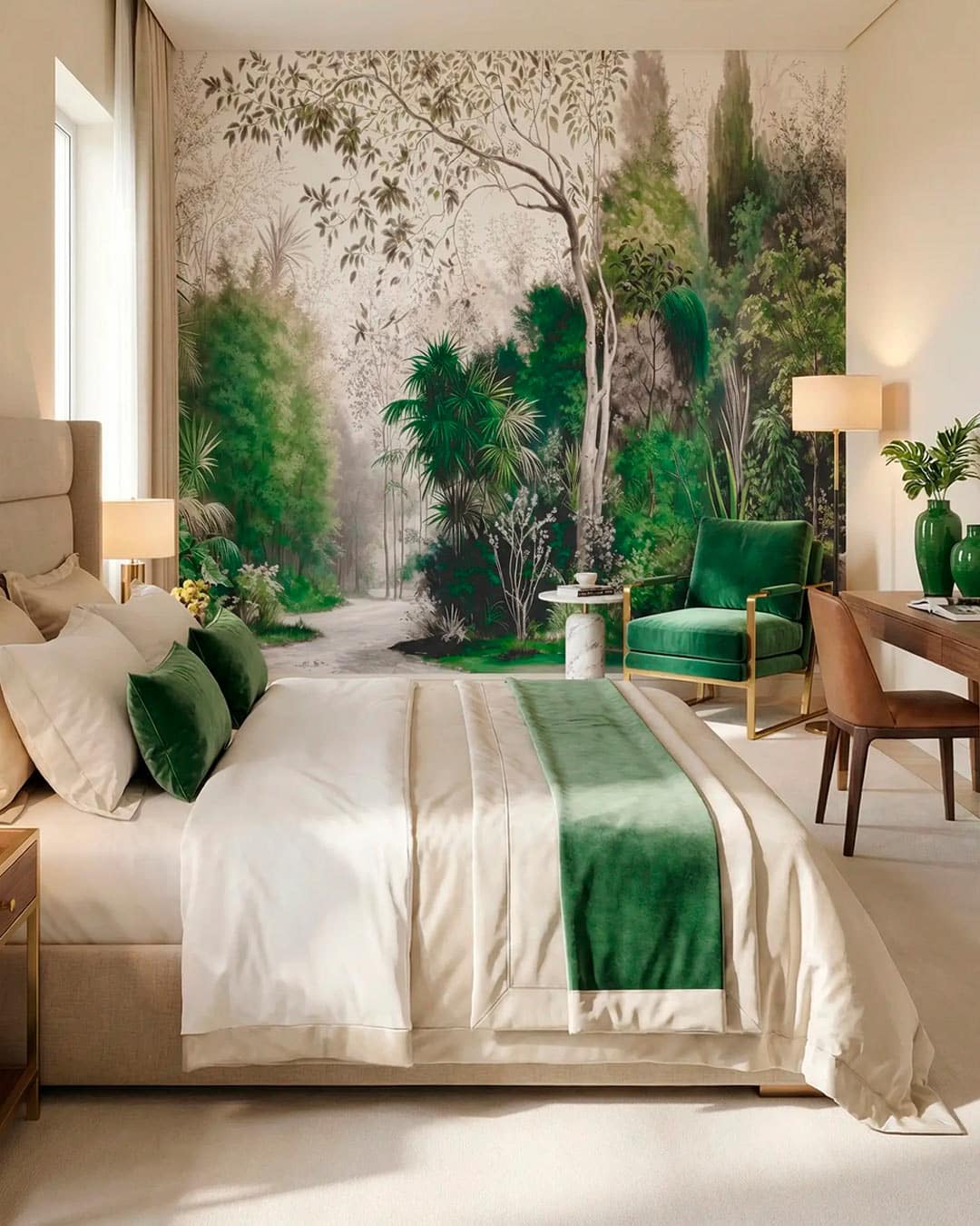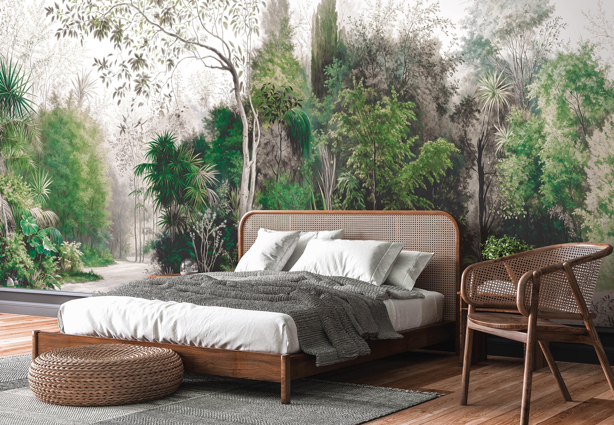 Idéal pour une chambre à coucher, un salon ou un bureau, ce modèle de papier peint sur mesure est une escapade vers une forêt enchantée. Il transforme l’espace en un refuge où il fait bon vivre. La subtilité des couleurs et la richesse des détails offrent non seulement une beauté visuelle, mais également une expérience sensorielle de calme et de détente. L’intégration de ce décor mural sur mesure dans votre intérieur marque une touche distinguée de raffinement et de sophistication naturelle.