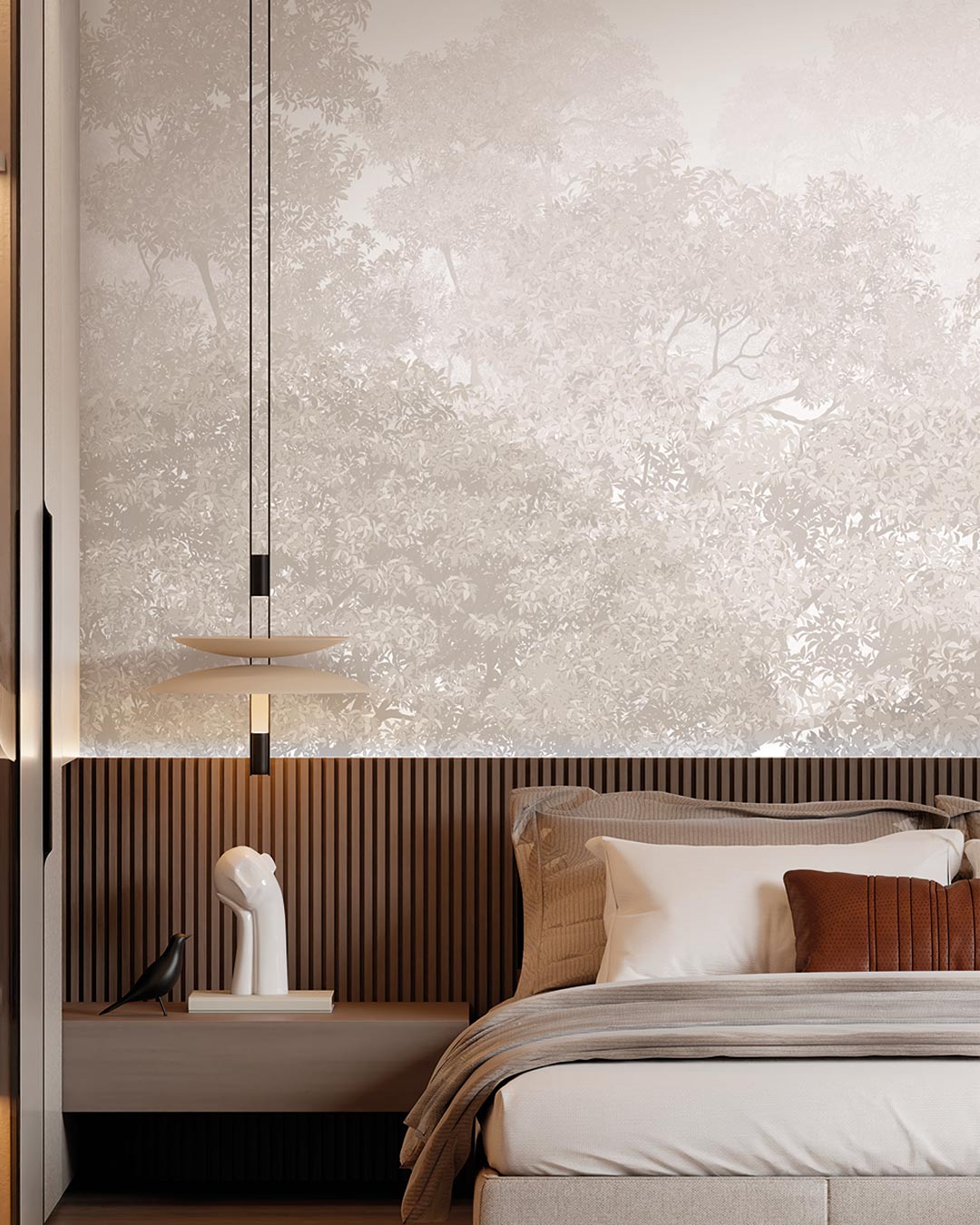 Il séduit par son look oxygénant, par les détails de ses dessins représentant les feuilles et les branches à la perfection, ainsi que les reliefs de la nature. La tapisserie garantit le délassement et la quiétude.