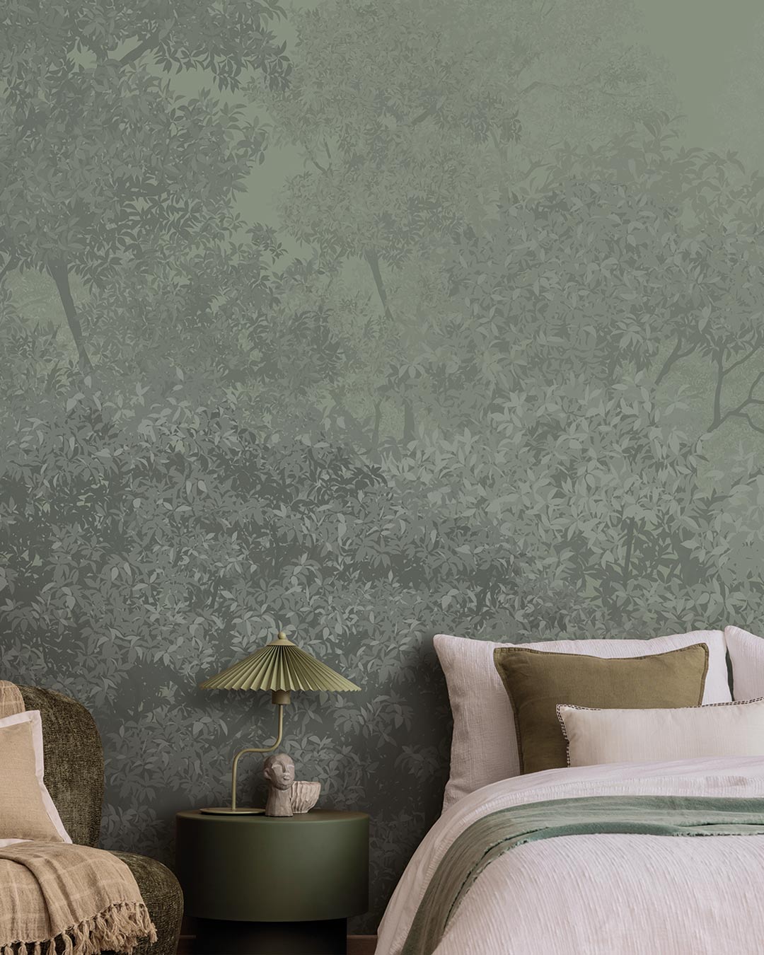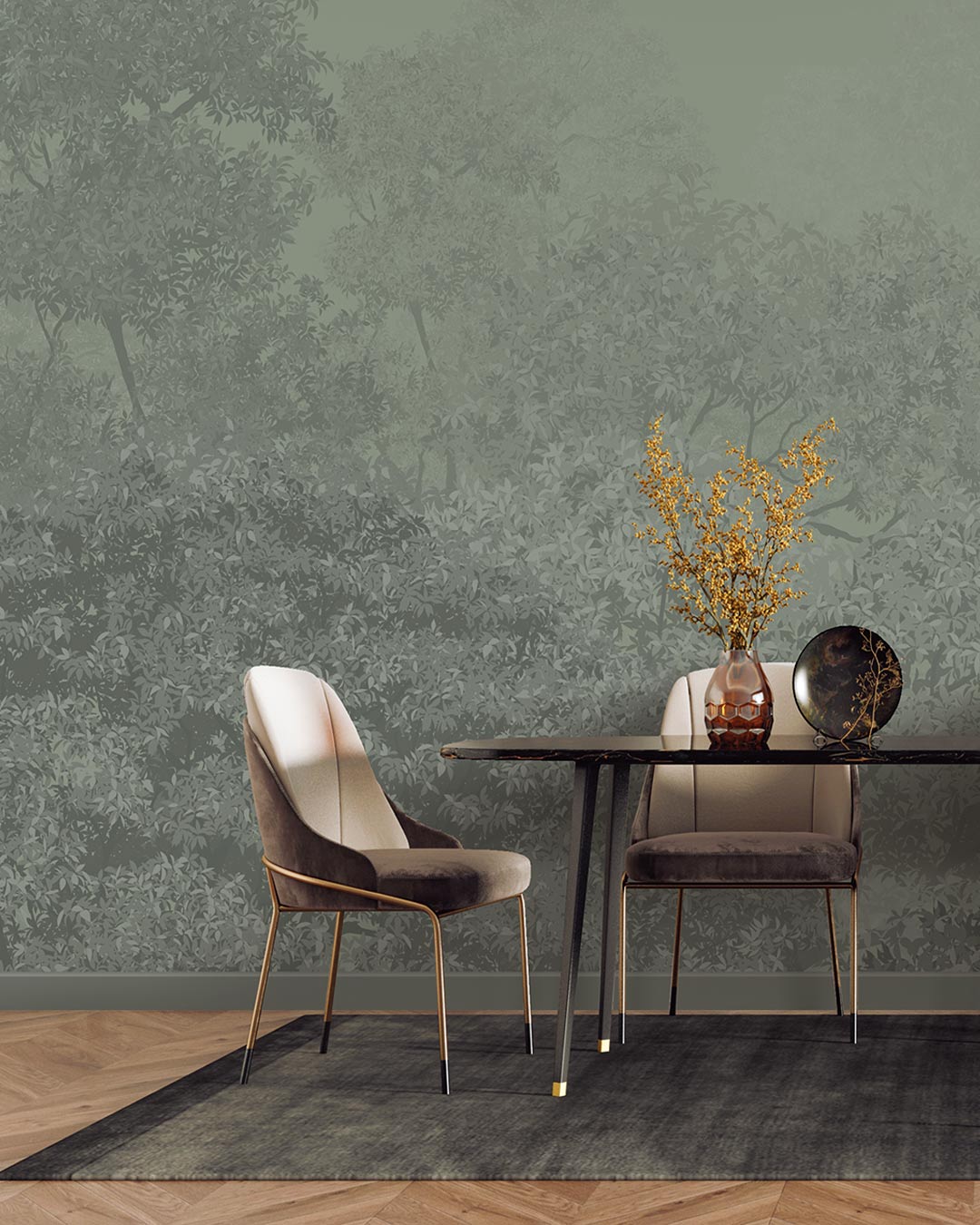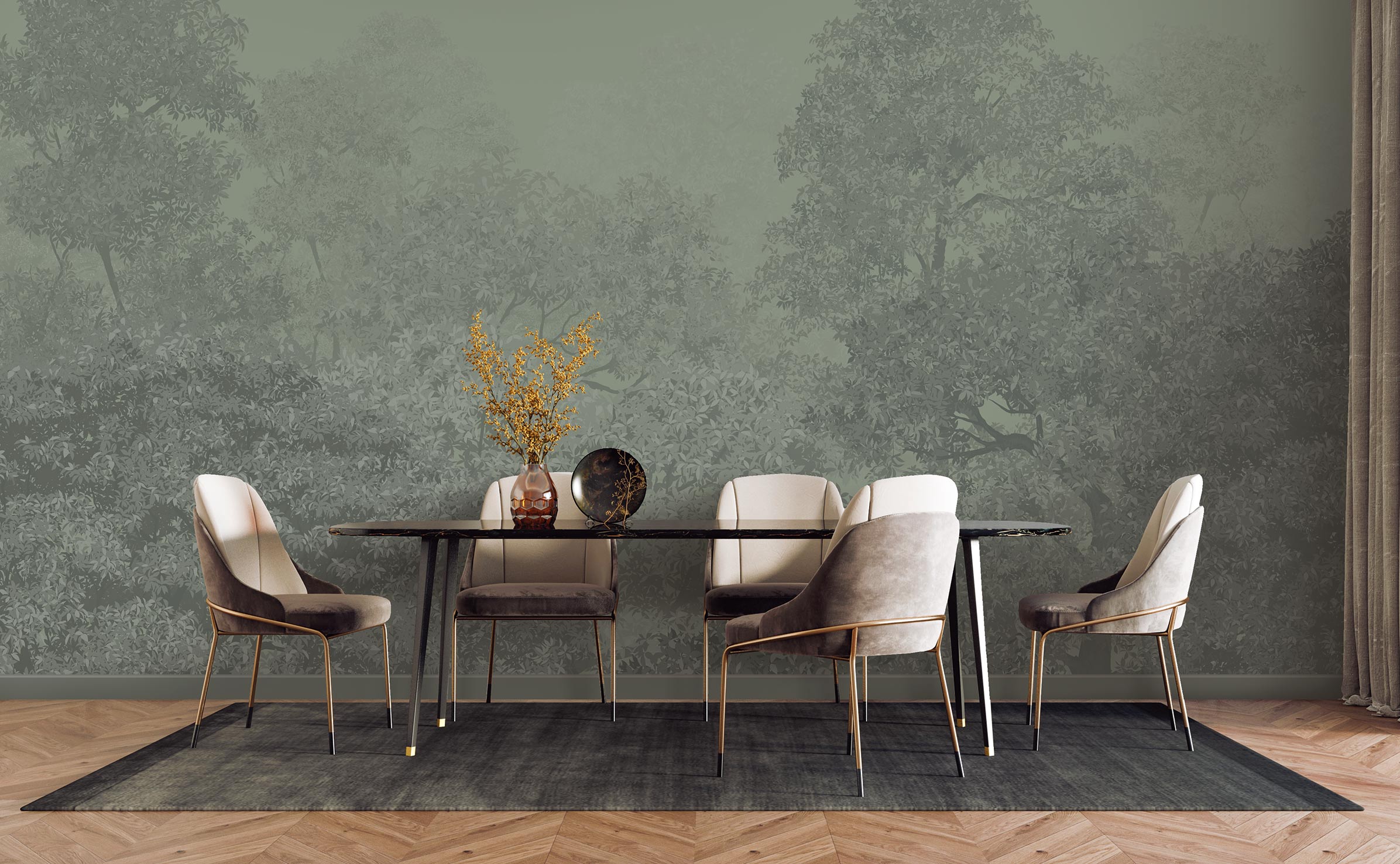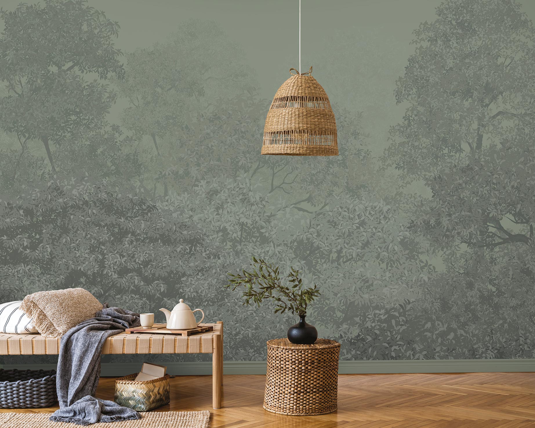 Le papier peint offre un paysage feuillu. Il nous plonge au cœur des arbres et des feuilles pour une décoration d’intérieur équilibrée qui nous invite au dépaysement. Comme une photo en transparence, il crée un décor végétal et naturel à peine marqué, qui invite la nature à l’intérieur de la maison. La tapisserie nous propose une flore généreuse, intense et foisonnante.