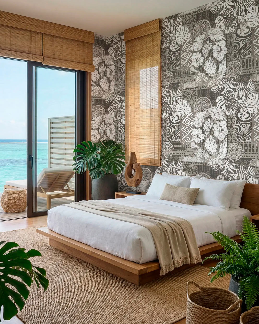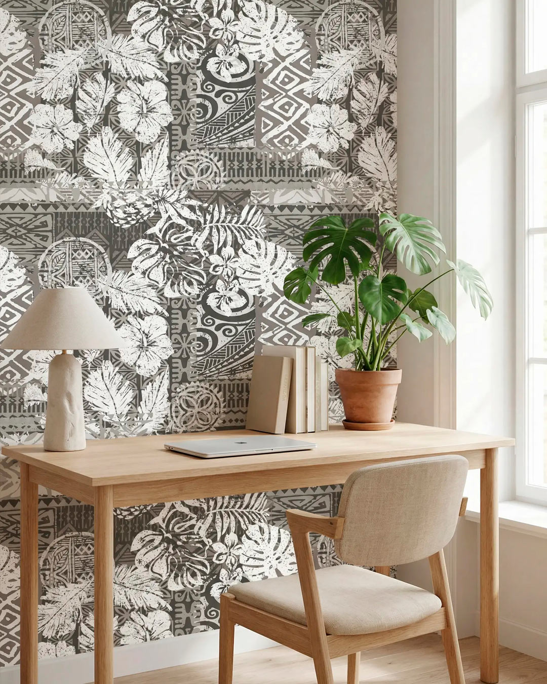 Comme un totem, le papier peint MOOREA devient objet rituel et artistique, qu’on ne se lasse pas d’admirer et d’explorer.