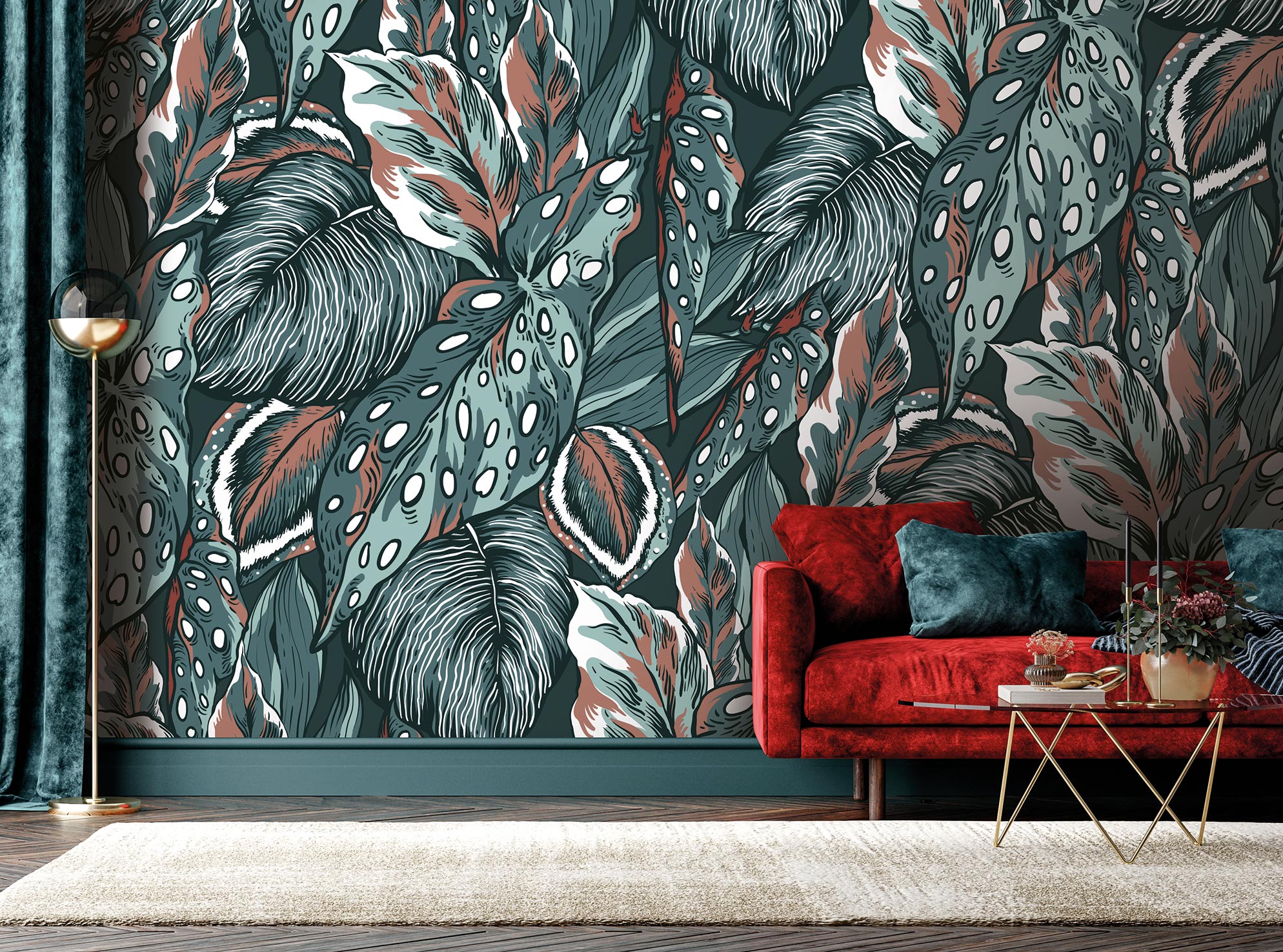 Comme un dessin, le papier peint PAANI met en valeur des feuilles exotiques en gros plan. La tapisserie est un voyage tropical en plein cœur de notre intérieur. Les grands végétaux sont dessinés grossièrement avec de nombreux détails, dans deux déclinaisons colorées : une version claire dans des teintes beige et vert pâle, un modèle plus puissant qui opte pour des variations de bleu gris avec des touches couleur terre.