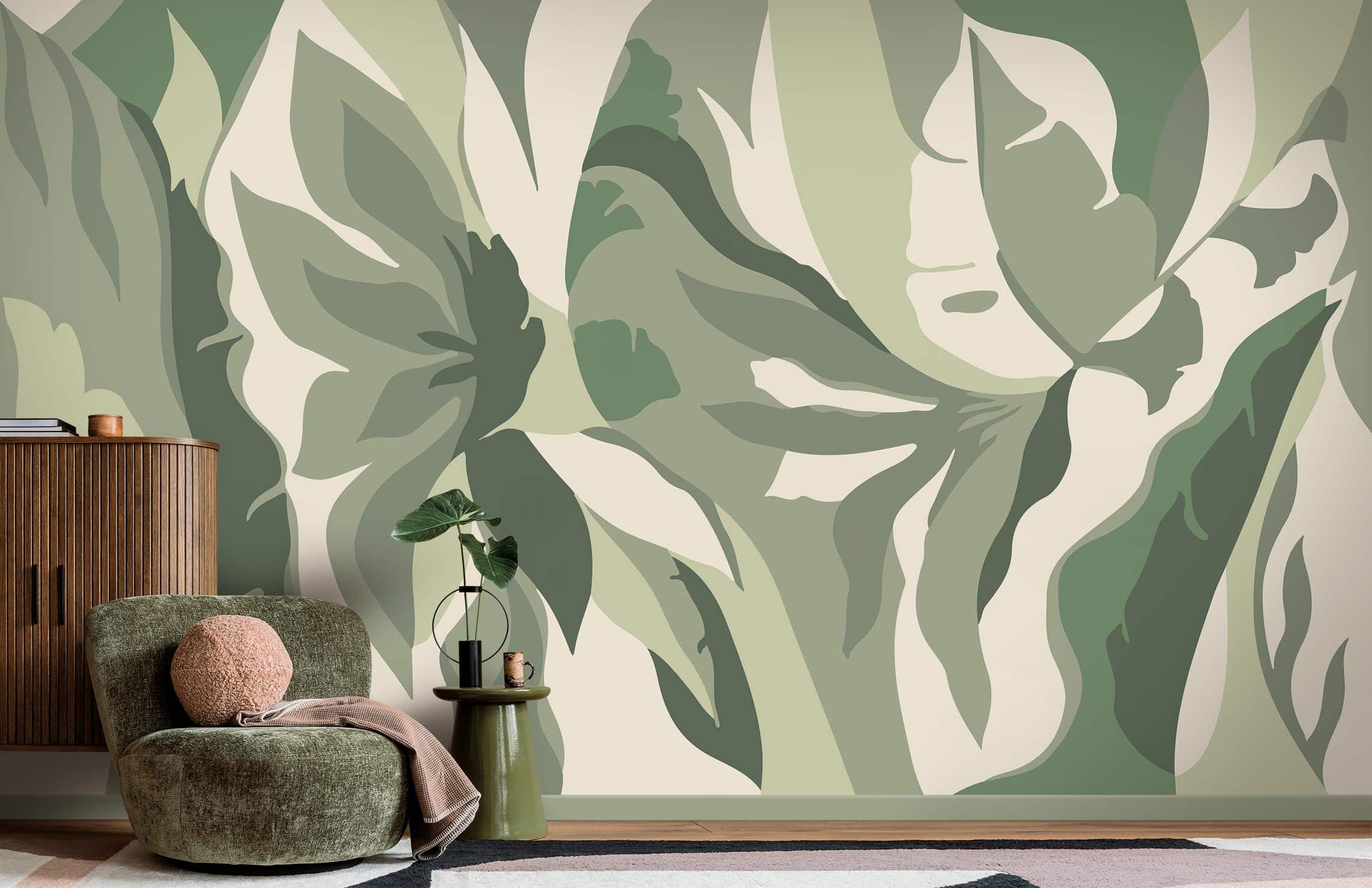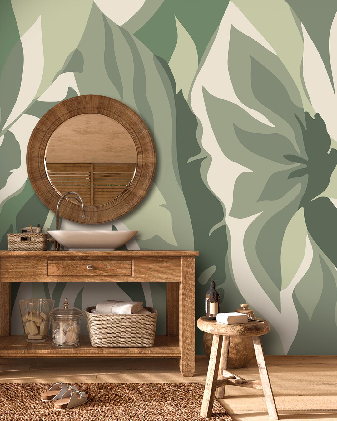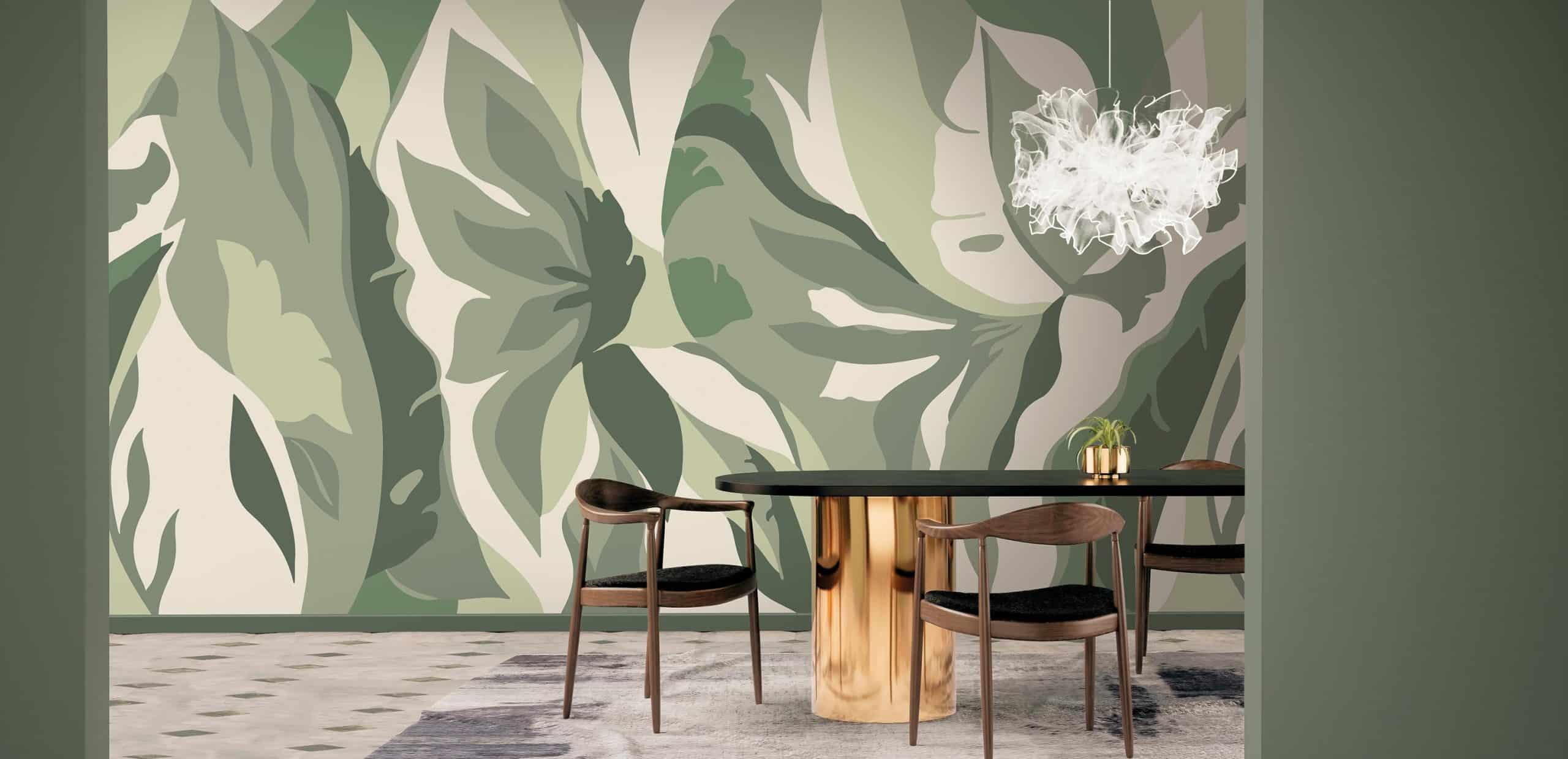 Des fleurs gigantesques décomposées habillent votre décor mural. Le papier peint n’a rien de discret, pourtant sa grâce artistique est absolument tangible. Les fleurs et les feuilles, semblables à celles de l’hibiscus, sont représentées de manière aléatoire. Décomposées et juxtaposées, les formes végétales s’enchevêtrent de manière originale. On perd le sens de la composition et nos sens se lovent dans les courbes sensuelles des végétaux.