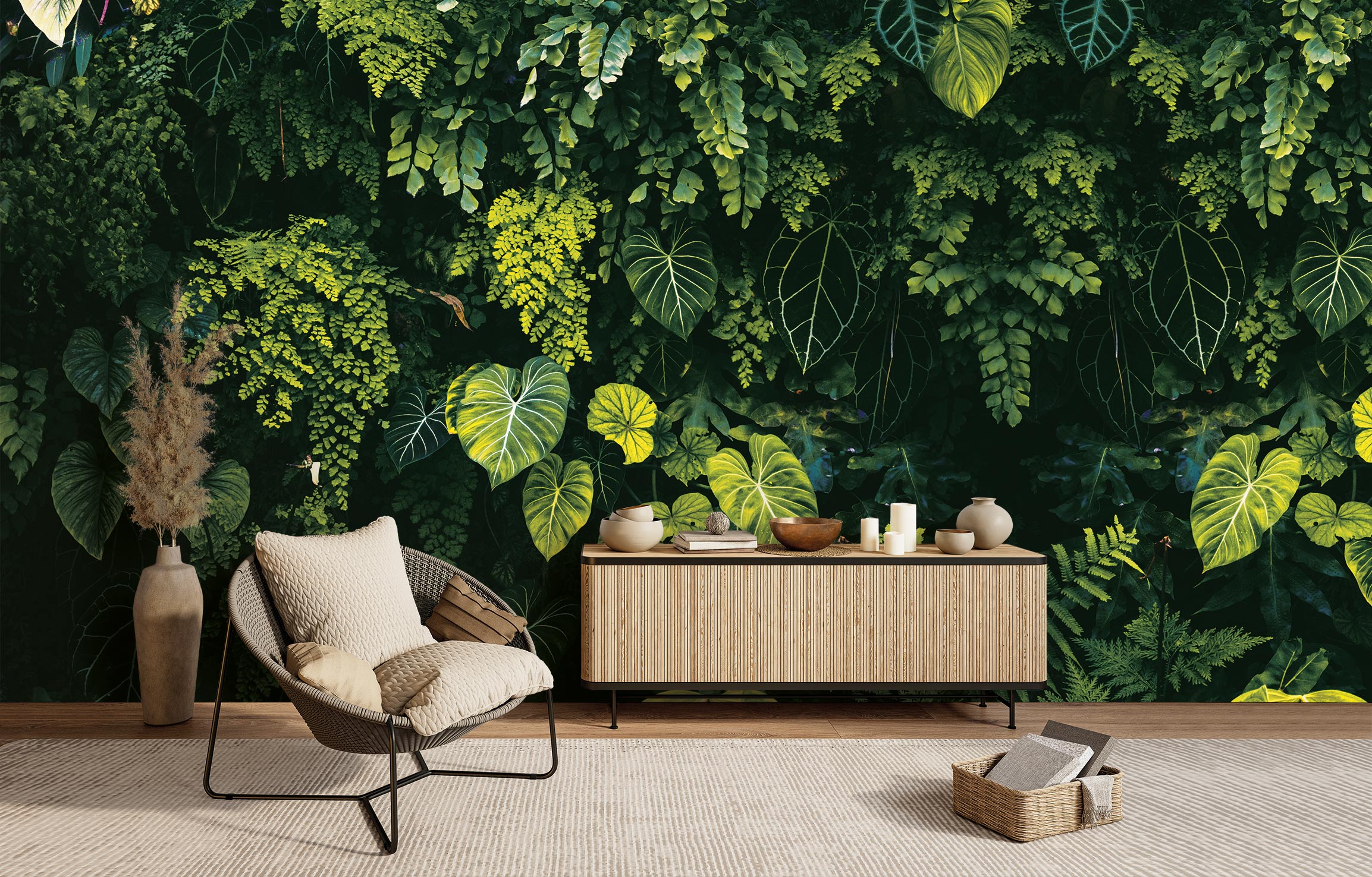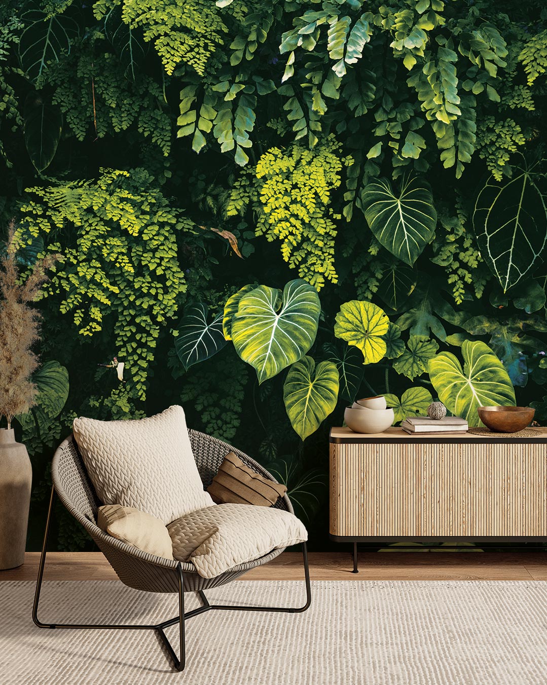 L’ambiance est à la fois onctueuse, intense et vivifiante. Le papier peint Végéta est un magnifique écrin de feuilles.